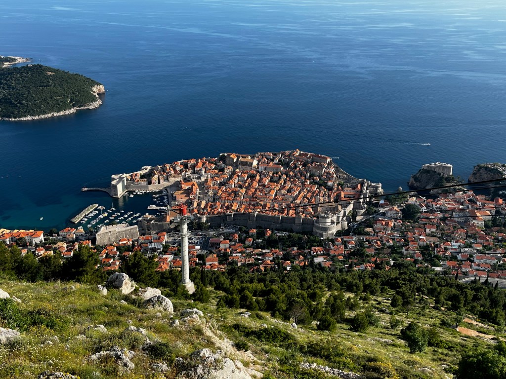 We also visited Dubrovnik, an ancient city at the south end of the country. We took a cable car ride up to the top of a mountain that overlooks the old part of the city. The view was like something out of a tour book. The walled old town could have been the setting for a fairy tale – it was the setting for parts of Game of Thrones (so was Diocletian’s Palace). The water of the Adriatic is clear and varies from blue to green. The orange tile roofs pop next to it. We timed our ride on the cable car to be up there as the sun set. It was magnificent.