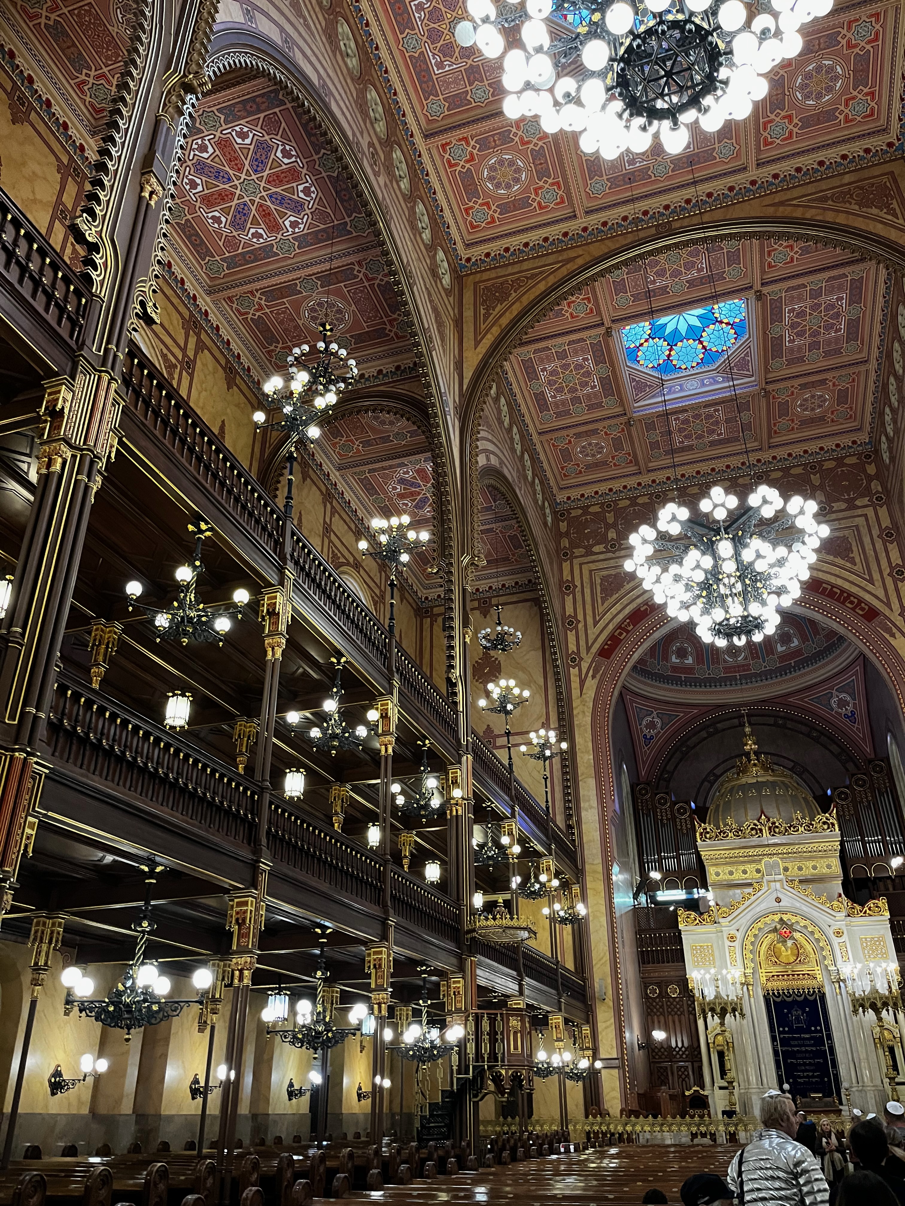Before we toured the synagogue, we stopped at the shoe memorial that lines the Danube River, a display that commemorates the murder of Budapest’s Jews by shooting them into the river which occurred between December of 1944 and early January of 1945. Our guide didn’t sugarcoat things – she acknowledged that Hungary fought on the side of the Nazis and that their fascist party, the Black Arrow, orchestrated the round up and murder of the remaining Jews. I wasn’t expecting that unvarnished acknowledgement but was grateful for it. The memorial was created in 2005, marking the 60th anniversary of those horrific events. The shoes are a poignant and painful symbol of the human beings lost. Men, women and children swept into the current leaving only their shoes as tangible evidence of their existence. Hungary today has a Jewish population of about 47,500 in total, with many living in and around Budapest. Before World War II Budapest alone had a Jewish population of 200,000, with an estimated 825,000 in the country as a whole.
